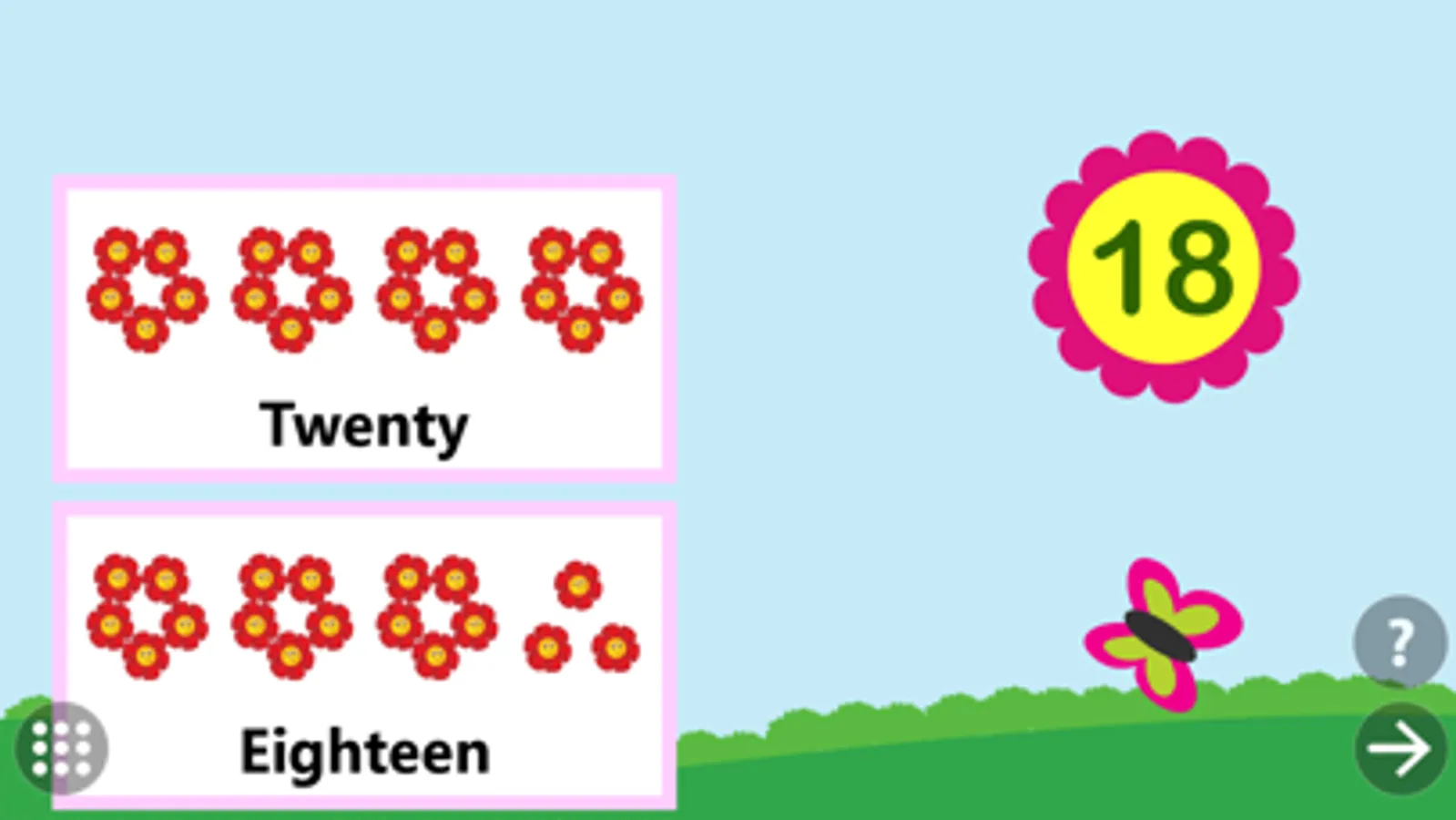 Number Names: Help the butterfly reach the right set of flowers that consists of exactly the same number of flowers as mentioned in the image in the right side. This education games will help your child improve their number counting skills.