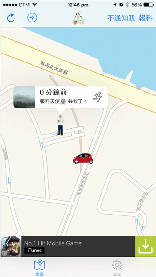 3. 當用戶設定好"通知我"。如在300米範圍內有其他用戶通報,用戶便會收到通知。
