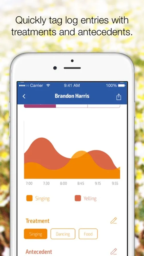 - Easily tag behaviors occurring due to specific antecedents and occurring with applied treatments.