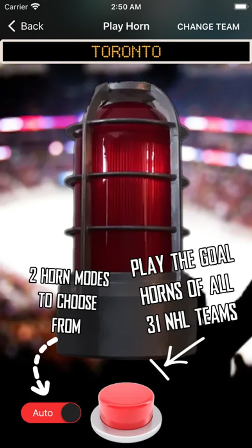 - Play Mode - Play the goal horns of all 32 NHL teams! (powered by Elite Goal Horns) Red light flashes while the horn is playing! Annoy fans of the rival team or celebrate goals at shinny!