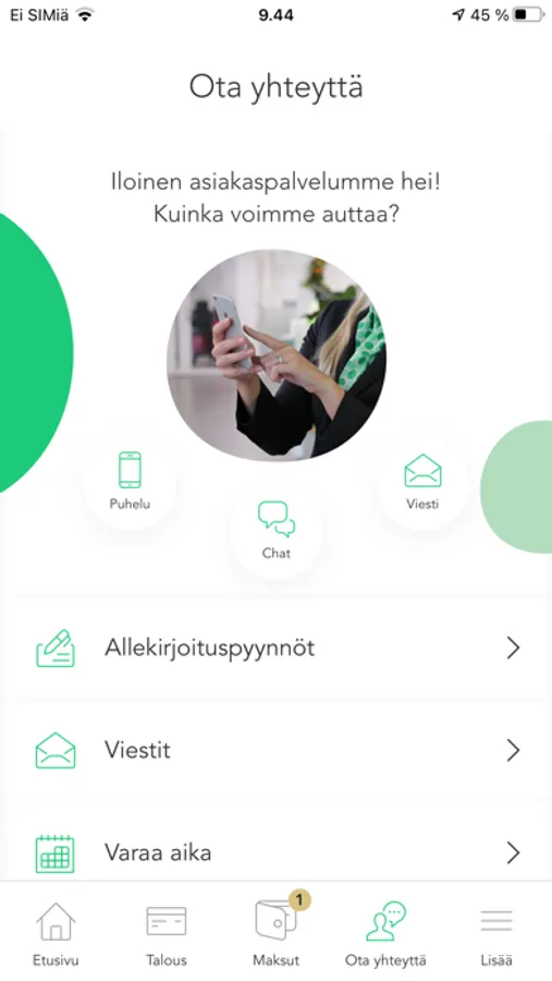 - asioida pankkisi kanssa käyttäen chat- tai viestit-toimintoa
