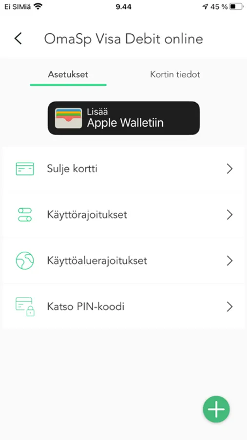 - muokata kortin turvarajoja ja tarkistaa kortin PIN-koodin