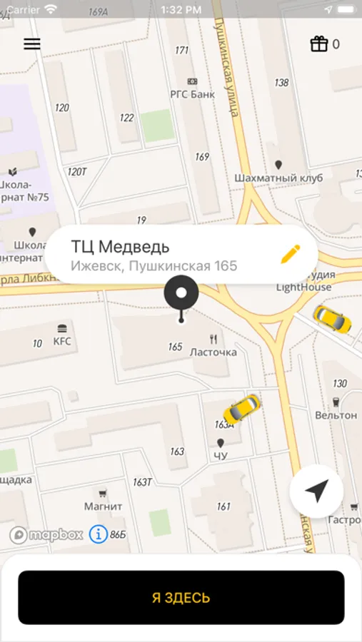 Приложение автоматически определит Ваше местоположение при помощи GPS и точек доступа WiFi. Это избавит от необходимости вводить адрес с клавиатуры.
