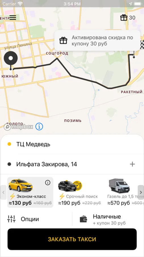 * Заказ такси одной кнопкой без разговоров с диспетчером