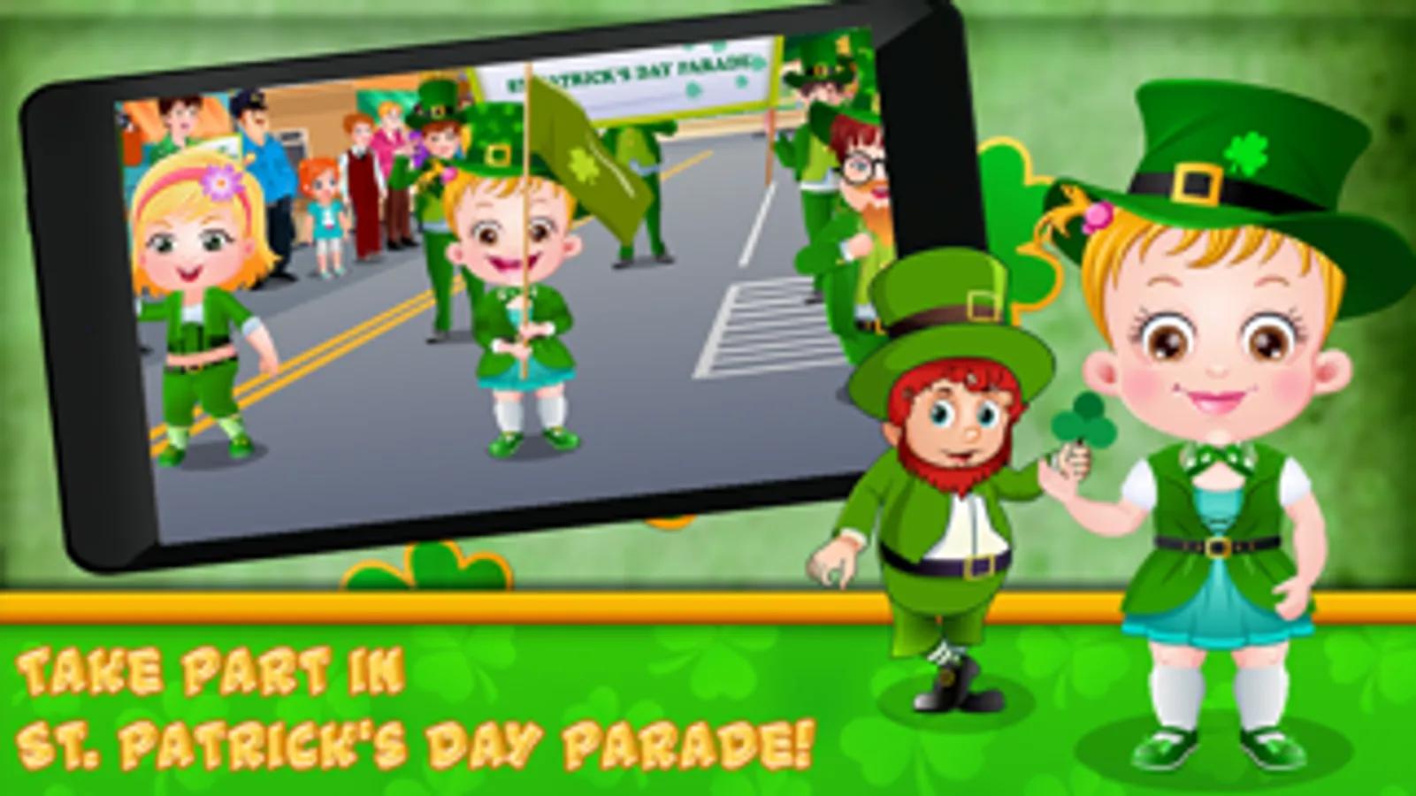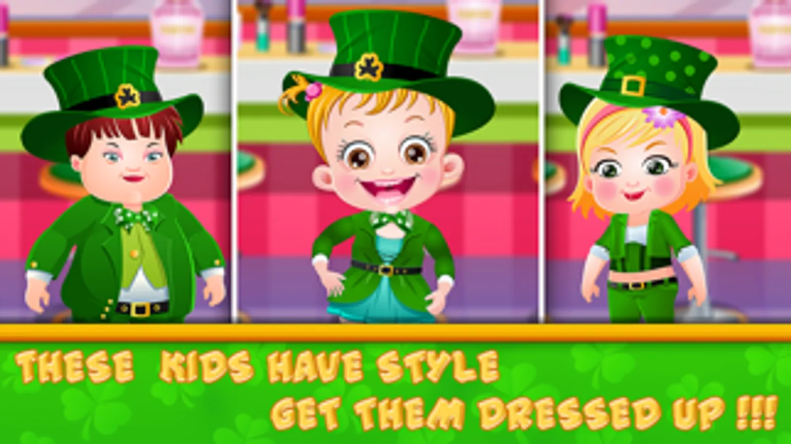 • Baby Hazel and her friends are excited to participate in St. Patty’s parade. Help the kids to dress up in green shamrock costumes and accessories.