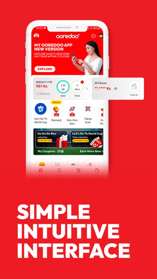 My Ooredoo App is THE telecom Super App of Myanmar, offering all the things you need in one app.