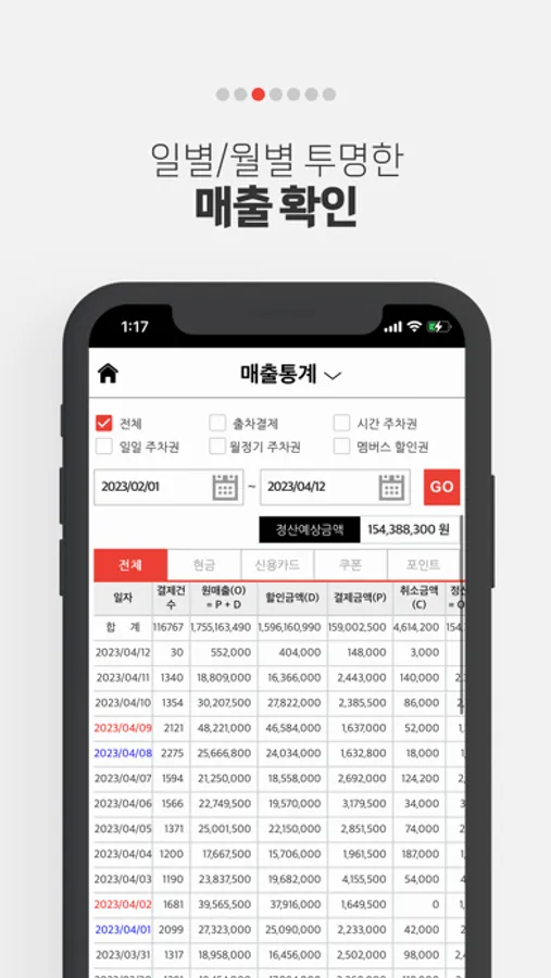 실시간 매출 정보 확인