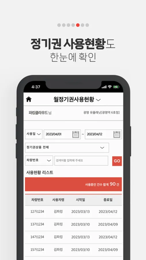 월정기권 등록 및 사용현황 확인