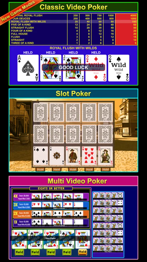 • Play all 24 Video Poker Games for FREE!