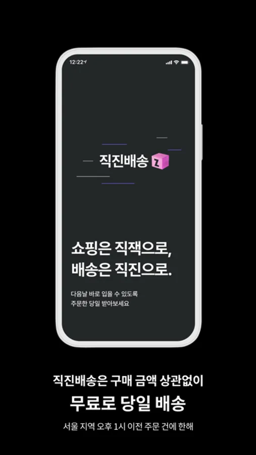 - 직진 배송: 마음에 드는 옷을 바로 입을 수 있도록, 어디서든 주문 당일 혹은 다음날 받아볼 수 있어요.
