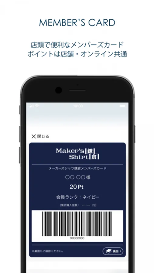 メーカーズシャツ鎌倉会員のお客さまは、本アプリをメンバーズカードとしてご利用いただけます。