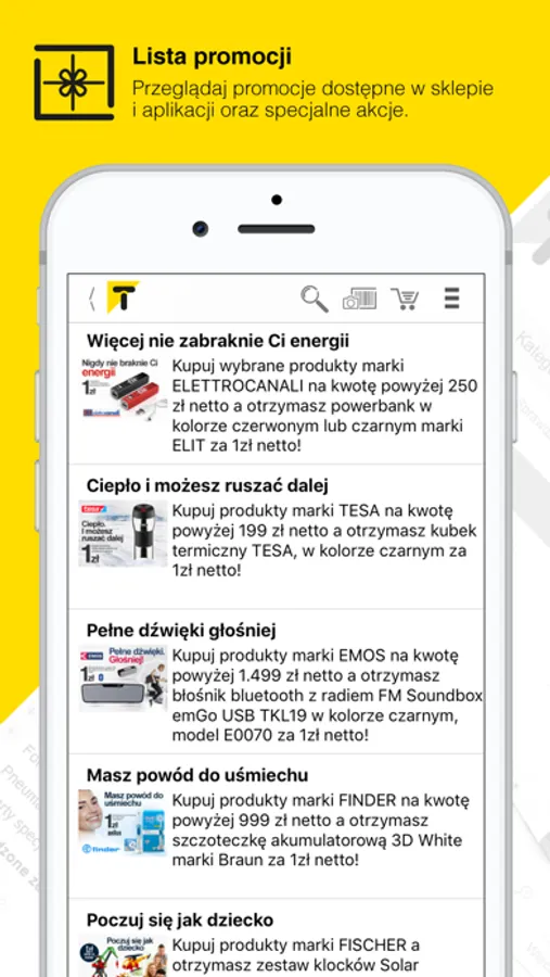 Lista promocji - Przeglądaj promocje dostępne w sklepie i aplikacji oraz specjalne akcje promocyjne dostępne tylko w aplikacji mTIM.