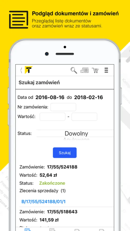 Podgląd dokumentów i zamówień - Przeglądaj listę dokumentów oraz zamówień wraz ze statusami.