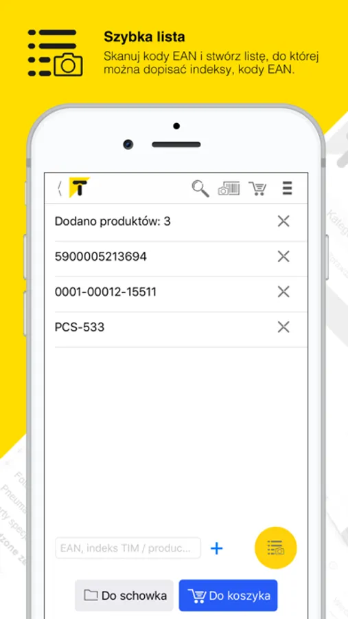 Szybka lista - Skanuj kody EAN i stwórz listę, do której można dopisać indeksy bądź EAN-y, a potem dodać ją do koszyka bądź schowka.