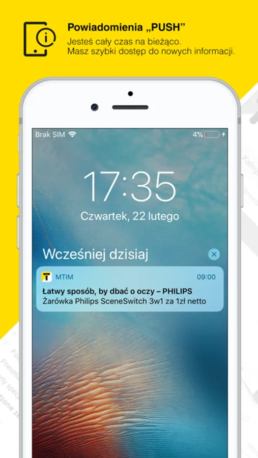 Powiadomienia "PUSH" - Jesteś cały czas na bieżąco. Masz szybki dostęp do nowych informacji.