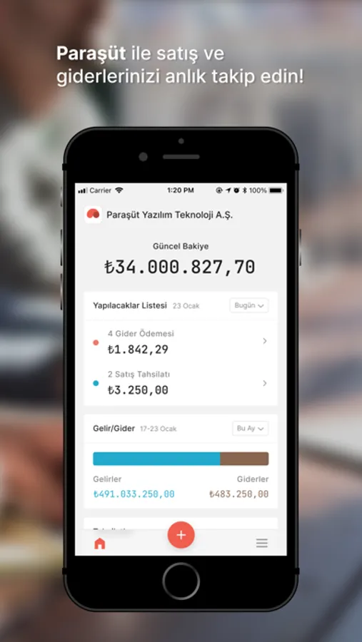 Paraşüt hesabınızı oluşturduktan sonra web uygulaması üzerinden hesap ayarlarınızı tamamlayıp, Paraşüt’ün mobil uygulaması ile finansal operasyonunuzu dilediğiniz yerden yönetmeye başlayabilirsiniz.