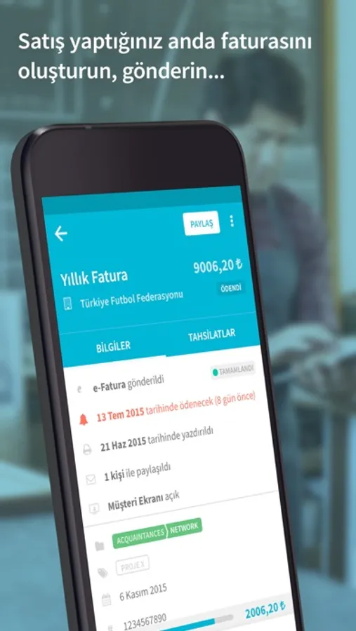 - Faturalarınızı yazdırabilir, e-fatura/e-arşiv olarak resmileştirebilir, ve müşterilerinizle paylaşabilirsiniz.