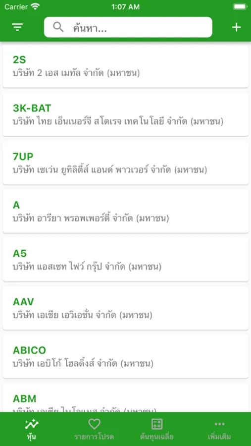 การค้นหาทำได้ง่ายและรวดเร็ว แสดงรายละเอียด Symbol แต่ละตัว ชื่อบริษัท ธุรกิจที่ทำ