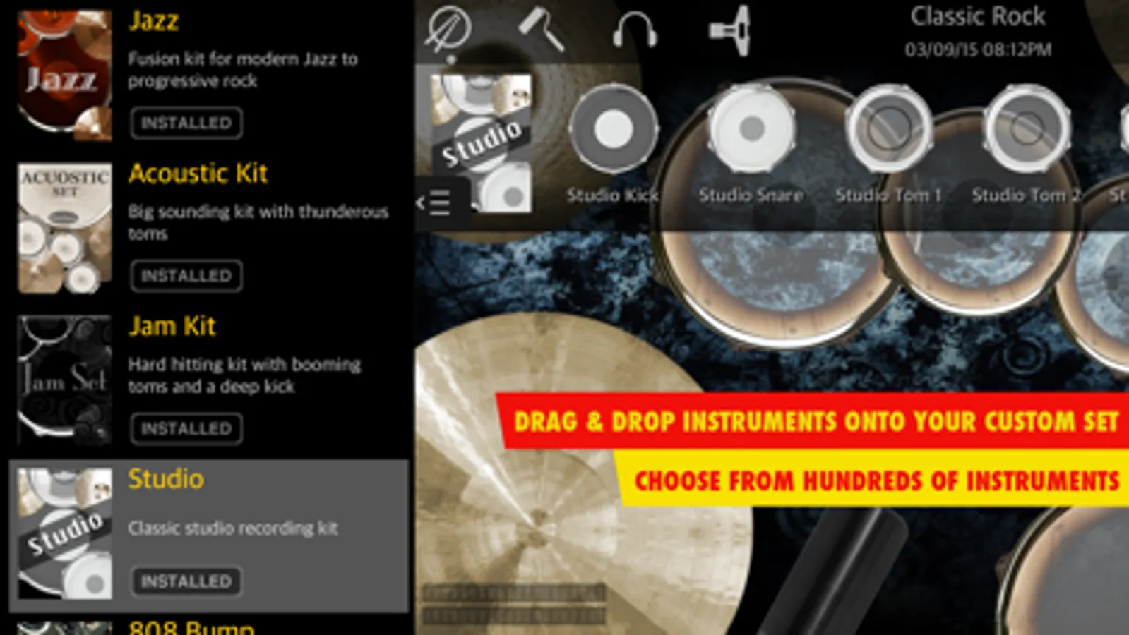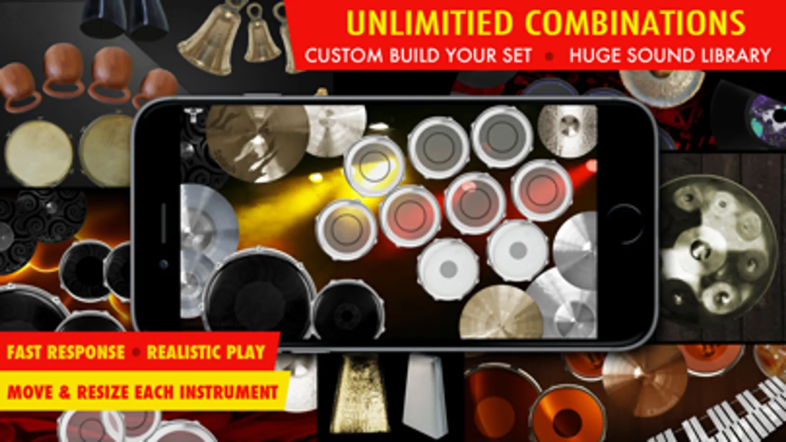 Drums XD is regarded as the best Drum App available today. With Drums XD you can build your own custom drum set piece by piece. Arrange and resize each instrument to fit your playing style. Choose from hundreds of Studio Quality kicks, snares, toms, cymbals, bells, timpani , shakers, blocks, steel & pan drums, tambourines and more.