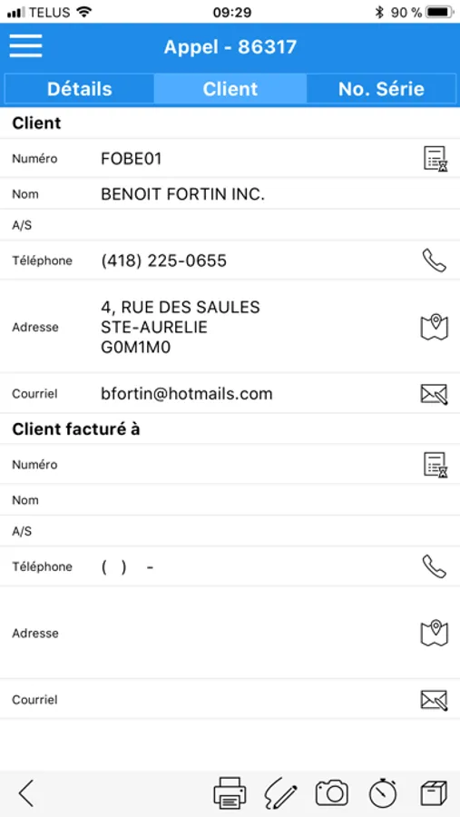 Possibilité de faire signer le client sur l’appareil du technicien. La signature peut ensuite s’imprimer sur la facture.