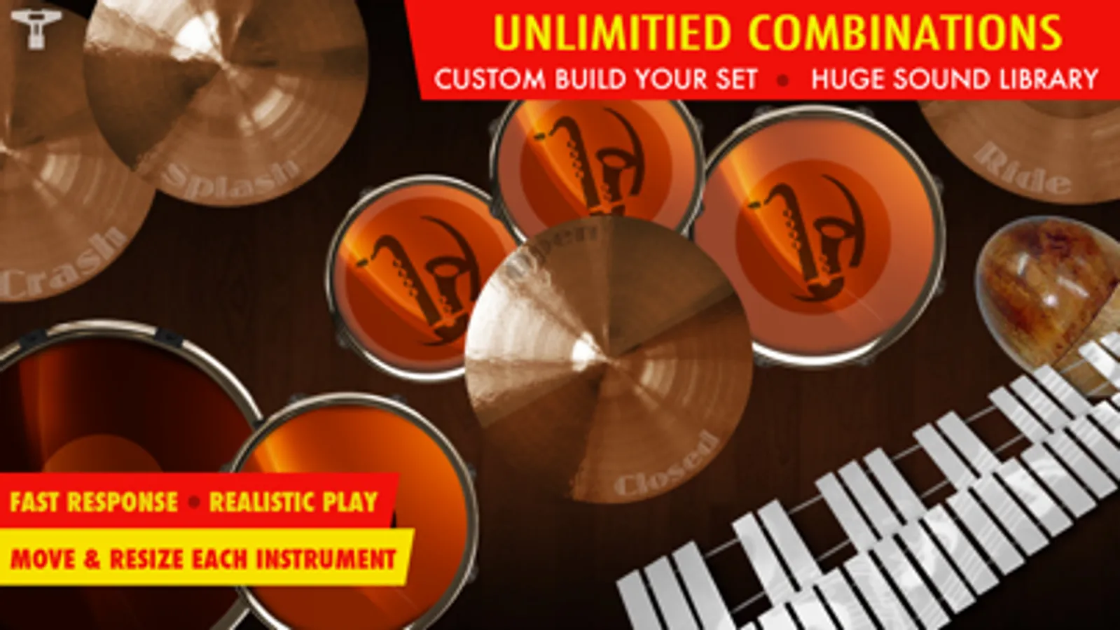 Drums XD is regarded as the best Drum App available today. With Drums XD you can build your own custom drum set piece by piece. Arrange and resize each instrument to fit your playing style. Choose from hundreds of Studio Quality kicks, snares, toms, cymbals, bells, timpani, shakers, blocks, steel & pan drums, tambourines and more.