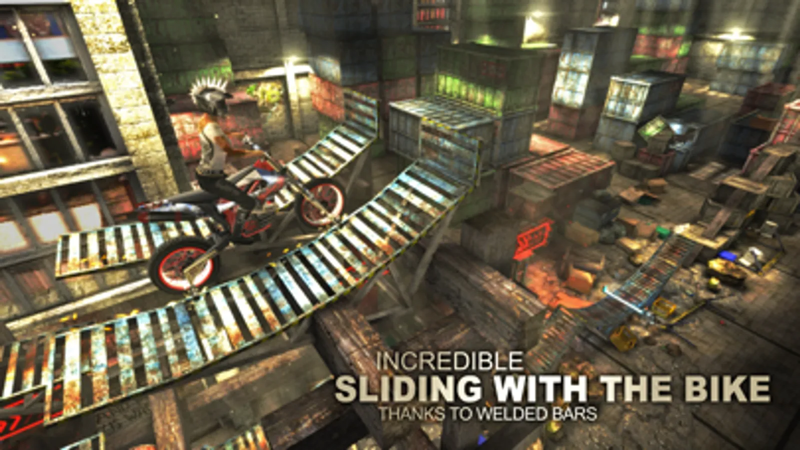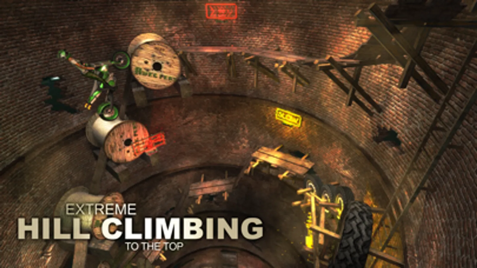 Kick-start your bike, turn on the hard hitting rock music, throw yourself into the underground race and pull the impossible off! Mastering obstacles and risky traps wait for you on the hot tracks. Everybody will see you doing incredibly mad tricks! Grab the all bonus rewards. Race the boss or bet him on a trophy. Slide with the motorbike on dangerous constructions, go through adrenaline on a trike and show to everybody how far you can get with the Hill Climbing motorcycle. Or slow down the reality as in a movie… Show off, get respect among your friends and on the Global Leaderboards… Just enjoy unexpectedly REALISTIC and POWERFUL experience!