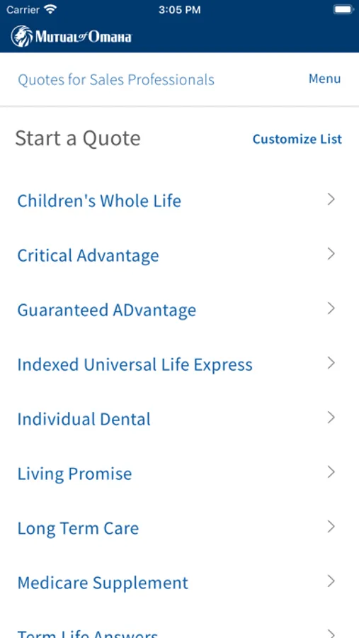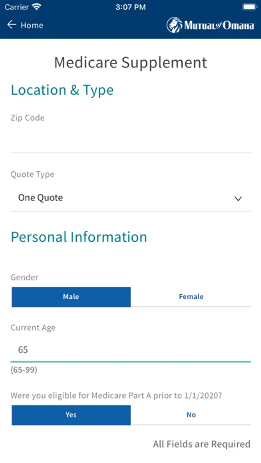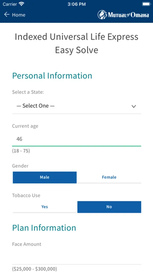 Mutual of Omaha quoting application to be used by agents/producers only for the purpose of obtaining a quote for insurance.