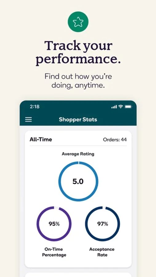 With no cap on how many orders you can shop, earn what’s right for you! You can even increase the number of orders you’re offered – simply shop and deliver during your preferred times, and strive to deliver 5 star service!