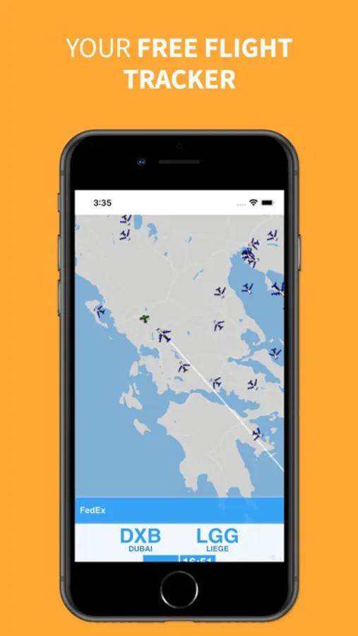 Flight Navigation lets you view whole flights with 100% correct and instant information. And if you wish, you can push the airports button and switch to another one you want or you can select an airline and view their whole flights in the sky!