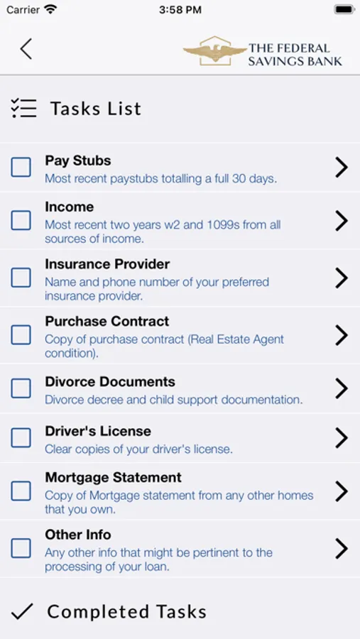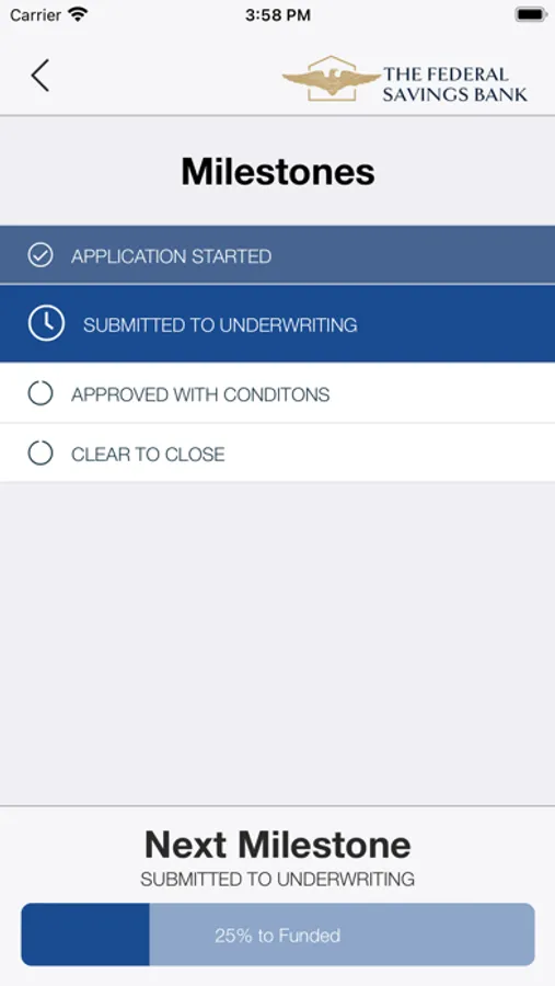 The TFSB Mortgage app allows all 3 parties (home buyer, loan officer, real estate agent) to track the progress of the home loan application process as the Home Buyer meets the milestones and conditions required to get final approval.
