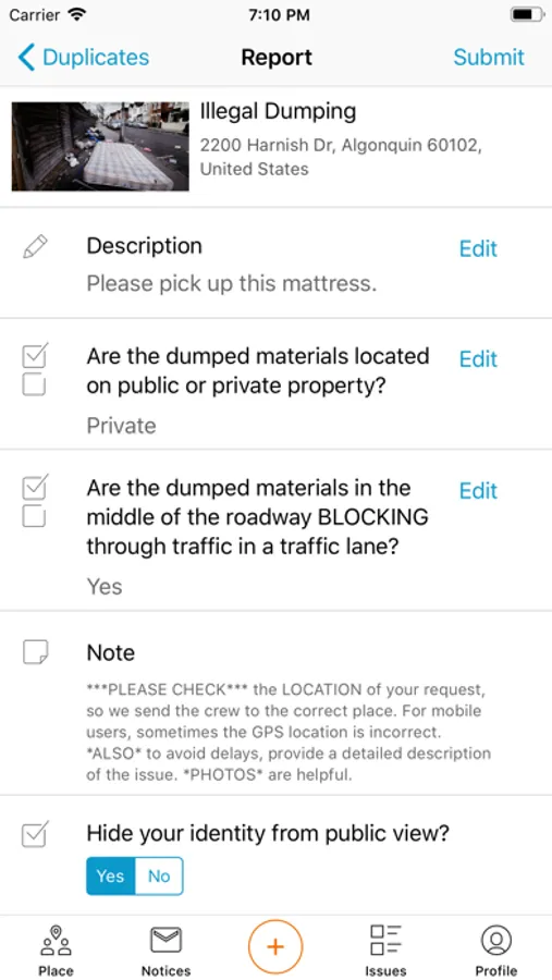 It is now easier than ever to report potholes, damaged street signs, or request other local services by using the Village of Algonquin’s See Click Fix mobile app. This app uses your phone’s GPS to recognize your location and offer you a menu of common quality-of-life conditions to select from. You can easily upload pictures or video, which helps the Village quickly identify and address your concern. The mobile app may be used to report concerns such as street light issues, graffiti, street maintenance, damaged trees and more. You may also track the status of requests submitted by you or other members in the community.