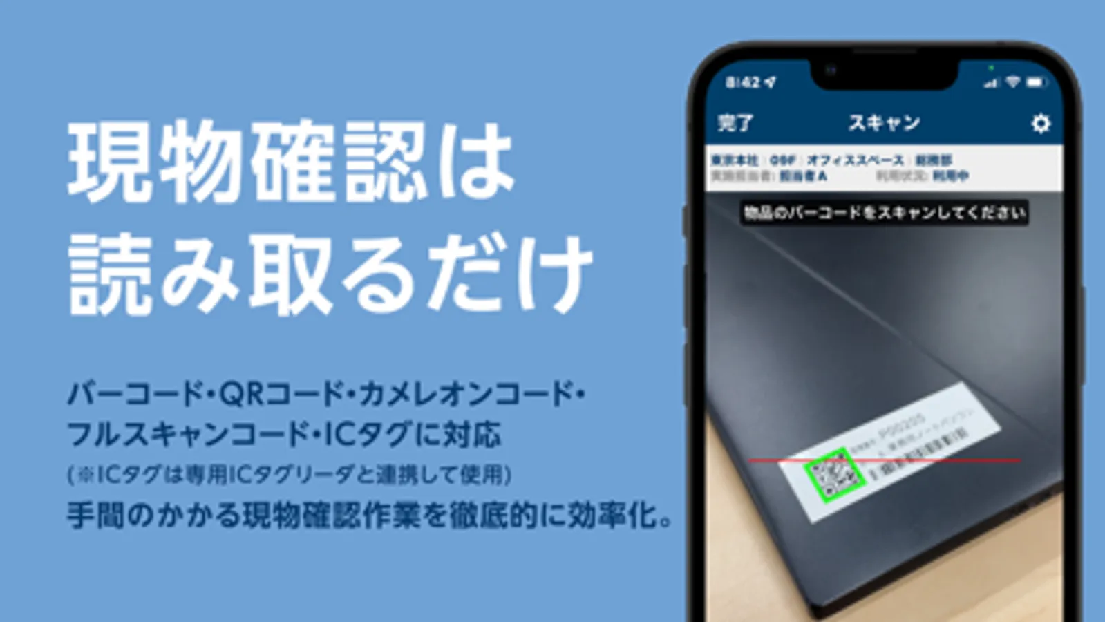 「Convi.BASE 棚卸し」は、Convi.BASE(コンビベース)に登録された様々な資産物品の棚卸しを支援するアプリケーションです。iPhoneやiPadなどのiOS機器を使用して物品に貼り付けられた管理シールのバーコードやQRコード、カメレオンコード、フルスキャンコード、ICタグを読み取ることで、Convi.BASE(コンビベース)に登録された情報との差異を把握・確認し、効率的かつ正確に棚卸し作業を行うことが可能です。