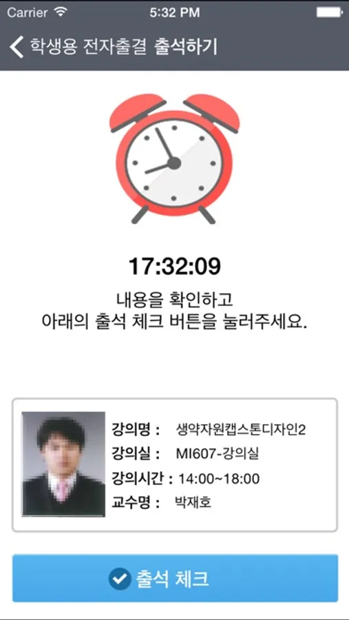 모바일 전자출결 앱을 활용하여 학생은 시간표를 토대로 강의 출석을 하실 수 있으며,