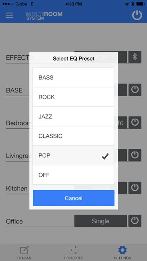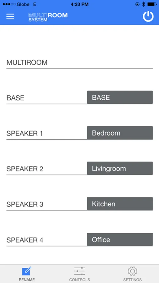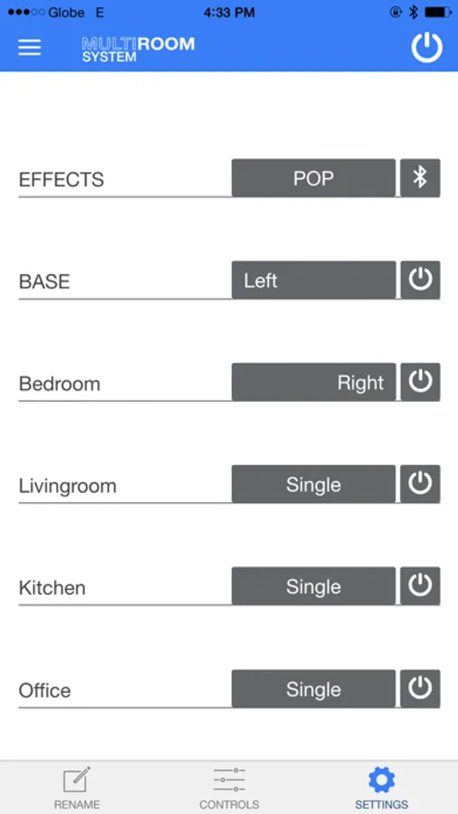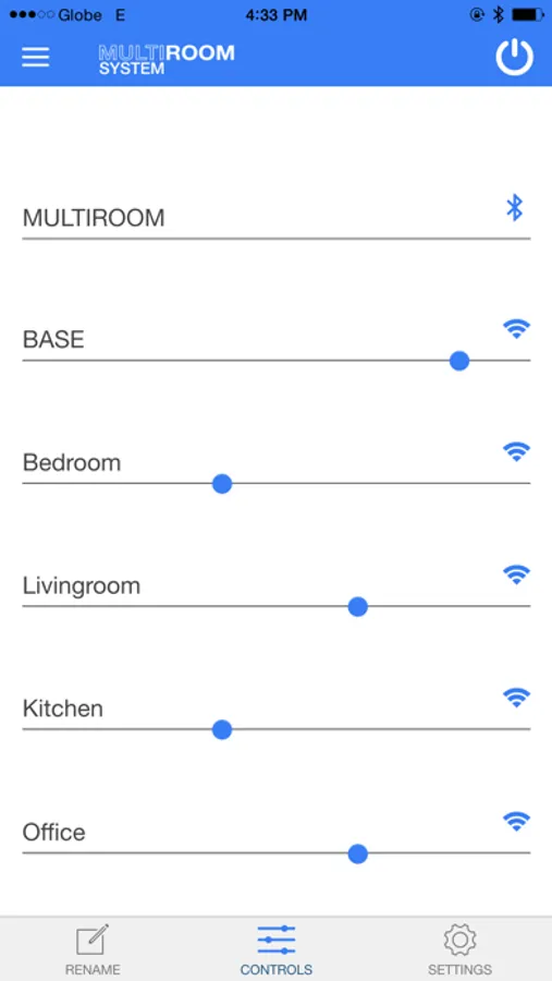 The Multiroom System app allows you to set the volume of the Multiroom System speakers, and also to change other settings such as full stereo mode, equalizer.