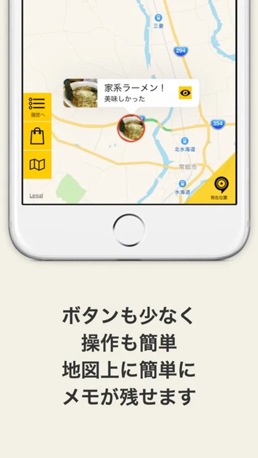 マプモは余計な機能はなく、とにかくその地点に写真とメモを残す事が出来ます。