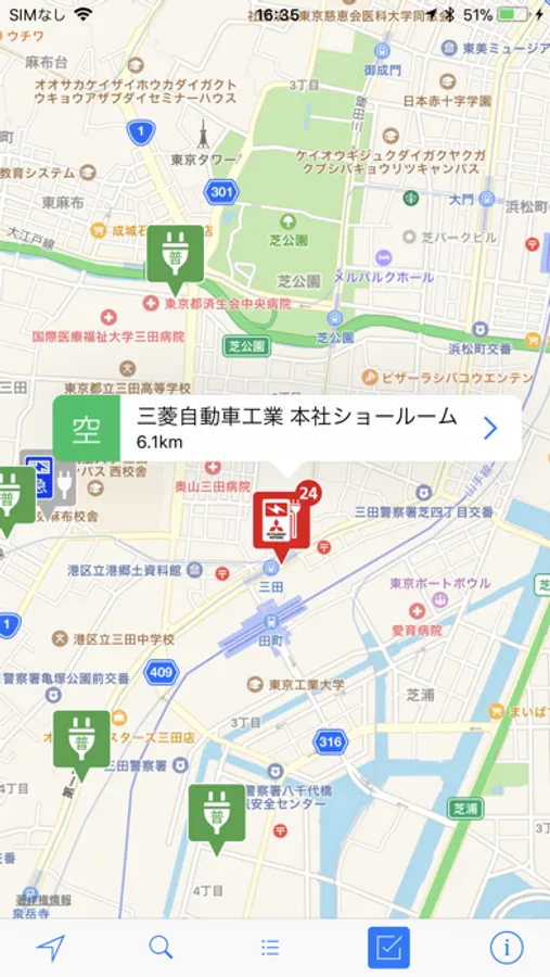 ・現在地から選択した充電スポットまでの距離表示