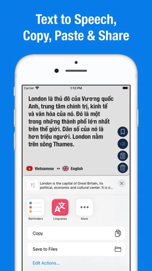It is a translation tool that helps you break down language barriers. Excellent app for all who makes the first steps in learning Vietnamese. Intuitive interface, easy navigation, quick result. Begin conversations confidently!