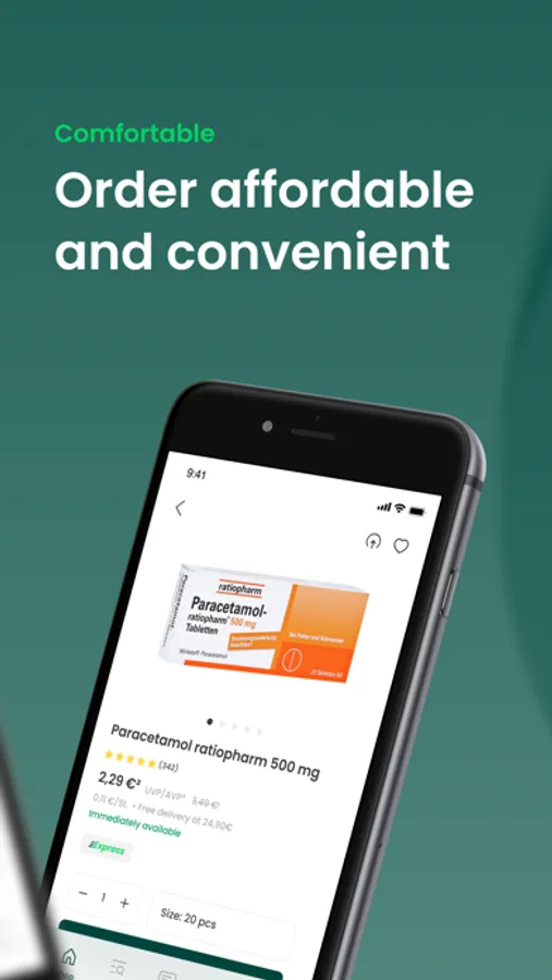 - ¹Order medications from our partner pharmacies via app and have it delivered the same day, free of charge (A service of DocMorris Services B.V.). We currently offer this service in a few cities, but we are working hard to expand the express delivery areas!