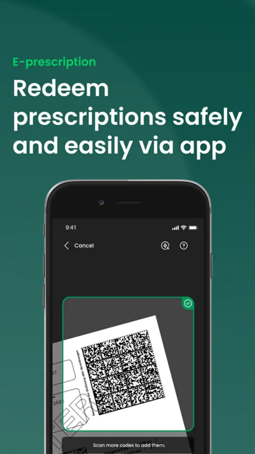 - Be the first customers in Germany to redeem an e-prescription from the convenience of your home with the “scan e-prescription” function.