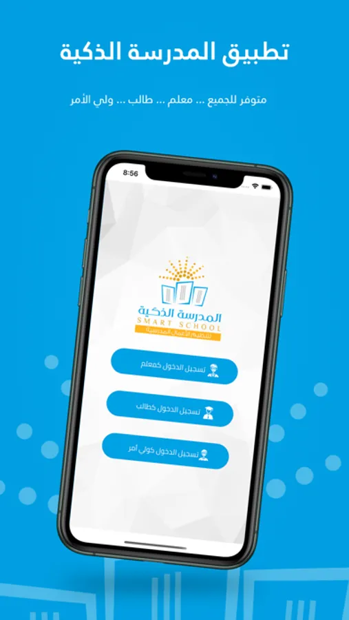 يعمل تطبيق المعلم مع مجموعة برامج المدرسة الذكية لتسهيل أعمال جميع القائمين علي هذا النظام لتجعل العمل داخل المدرسة اكثر دقة و اكثر تنظيم.