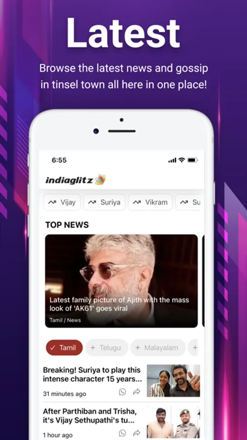 Enjpy India's Premiere movie destination, IndiaGlitz.com, on your iOS devices! IndiaGlitz is the ONLY service which offers you 24/7 coverage of Bollywood, Tamil, Telugu, Malayalam and Kannada movies.