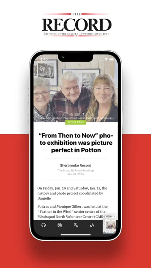 The Sherbrooke Record app keeps you up-to-date on local Sherbrooke news wherever you go. Enjoy the digital features of our e-edition like social sharing to Facebook and Twitter. When you need to be offline, just download the edition to your device and save for later. Get in-depth coverage on local, regional, and national news, sports, business, lifestyle, and more straight to your phone or tablet.
