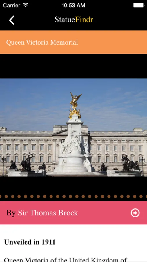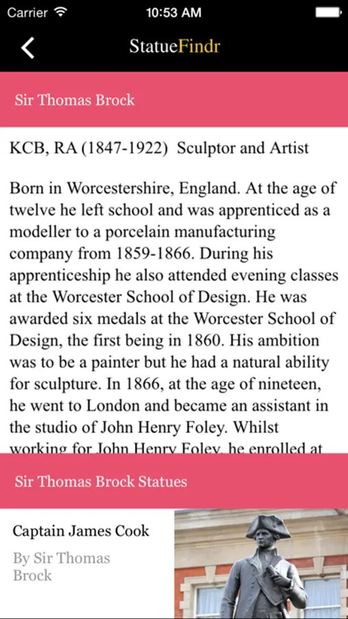 Are you interested in London? Sculptures? History? Culture? Public Art? Sculptors? If you answer yes to any of the questions, you should download StatueFindr! This user friendly App provides a wealth of information using over 350 sculptures and statues to guide you all over the City of Westminster in the heart of London.