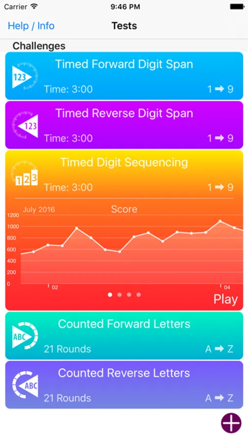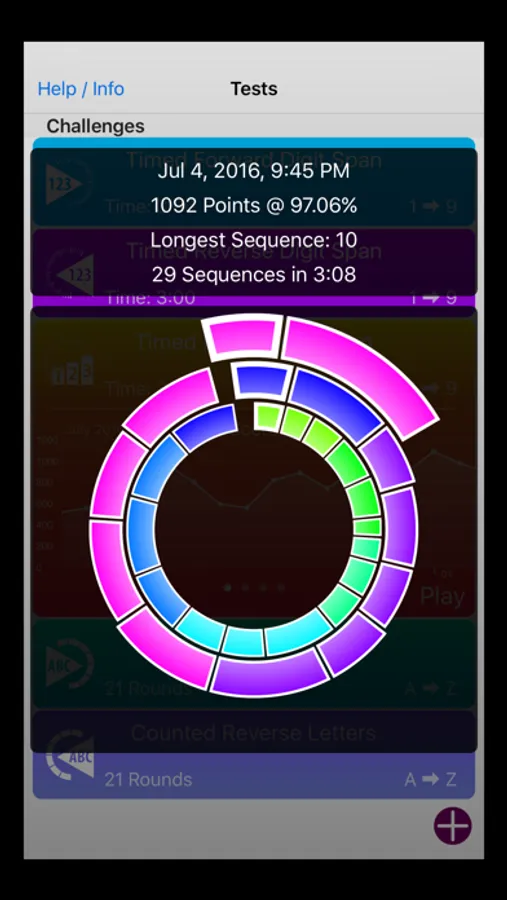 SequenceTrainer is designed to help exercise and track the health of a person's working memory. It should also be of benefit to those preparing for the WAIS-IV and WISC-V assessments.