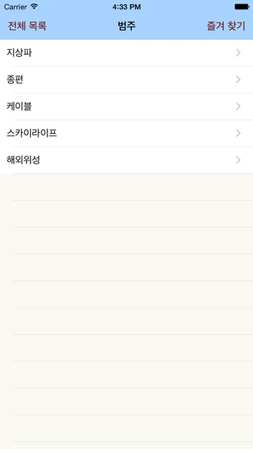 - 지상파, 종편, 케이블, 스카이라이프, 해외위성