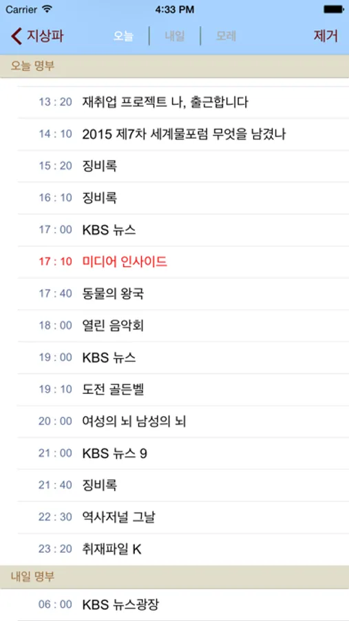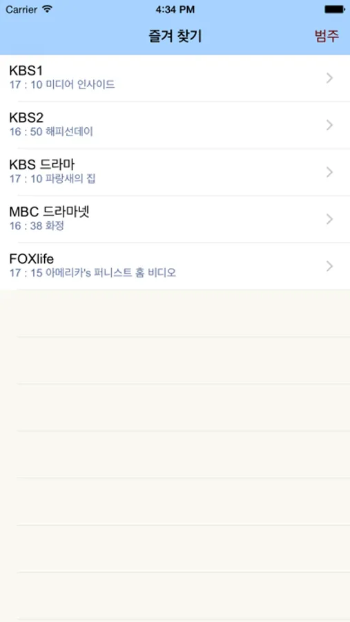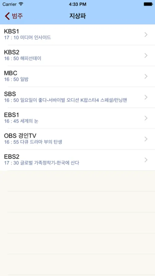 응용 프로그램은 한국 의 TV 가이드 를 탐색 제공