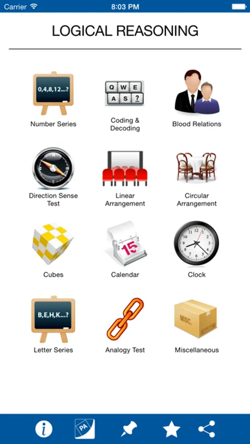 A collection of 1500+ logical aptitude questions frequently asked in competitive examinations and placement papers. It is designed as a preparation tool for job aspirants and those waiting to crack CAT, XAT, MAT, NTSE, UPSC and various bank exams. This app sharpens your IQ, tests your aptitude skills and enriches your knowledge.
