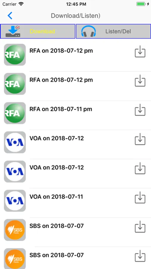 This application currently offers 2 radio channels within 8 to 15 days archived like: