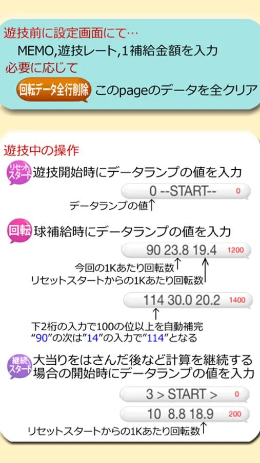 球補給時の回転数を入力していくだけで随時自動計算!