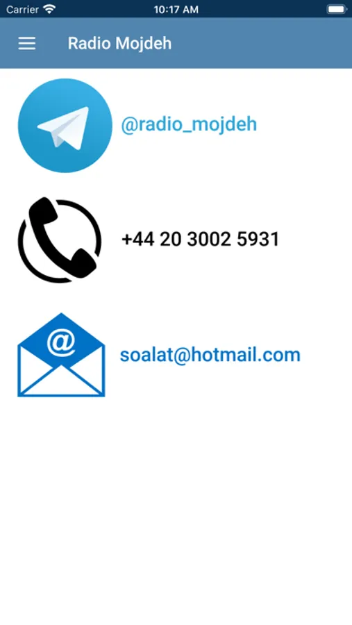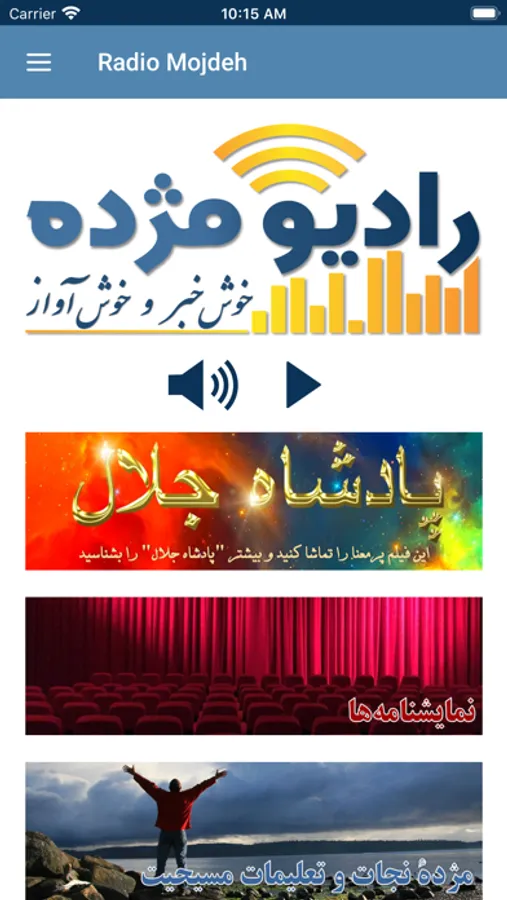 The Radio Mojdeh player app allows you to listen to live radio in Farsi (Persian). Radio Mojdeh broadcasts music and talk about the living Jesus Christ and what he can do for you.